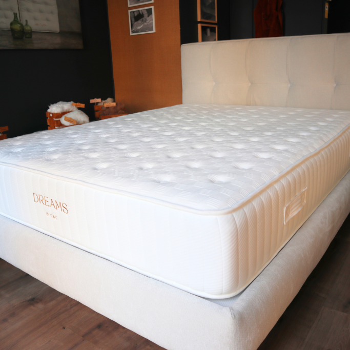 El colchón consta de muelles ensacados con los que se favorece a la adaptabilidad y a los movimientos. Materiales de alta calidad como: Látex, Fibras de Bamboo, Fibras Mohair, Lana de Camello, Lino y Algodón. Su acolchado consta de Foam Comfort, espumación de alta densidad que se amolda suavemente al cuerpo para conseguir un confort personalizado de alta durabilidad y baja presión.